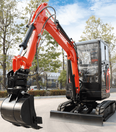 Mini Pelle Rotative Baimse 2500 kg, Moteur 3 Cylindres Kubota D1105 | Émeraude-Pelle