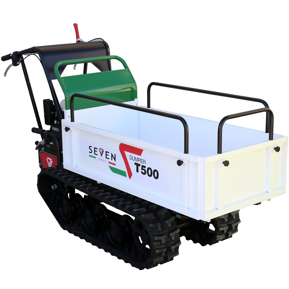 Brouette à chenilles Seven Italy T500 GX E – Benne extensible – Démarrage électrique – Capacité portante 500 kg