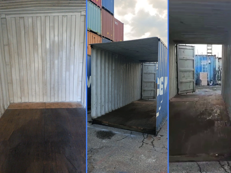Intégrité structurelle et étanchéité garantie. Plancher bois marine de 28 mm d’épaisseur. Un seul accès à l’extrémité par porte double.