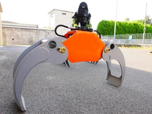 Grappin avec Rotateur Lombarda Ingranaggi pour mini-pelles et grues forestières 1,8-3,5 tonnes. Modèle DK-11C capacité de levage 1000kg et ouverture des pinces 108cm