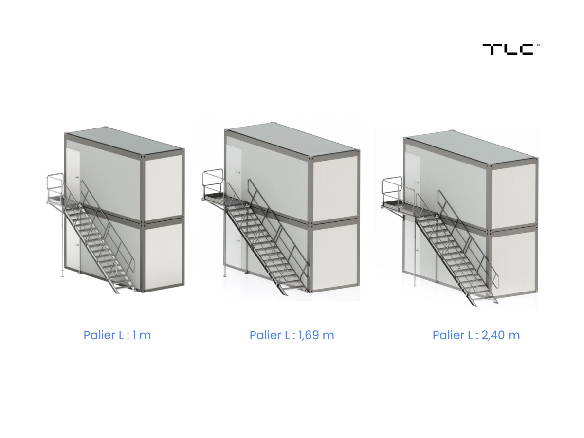 Escalier pour container ou bungalow hauteur standard (2,59 m) | Escalier et palier en pose latérale du container