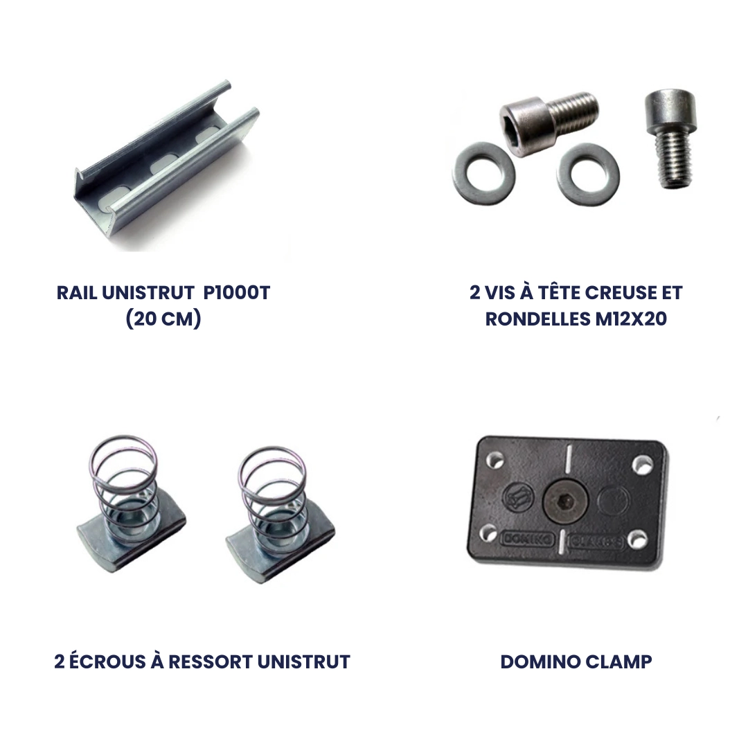 Le kit comprend tout ce dont vous avez besoin de fixer sur un container maritime à partir d’un rail de montage métallique Unistrut. La fixation est rapide et facile en s’attachant solidement dans les coins iso du container maritime.