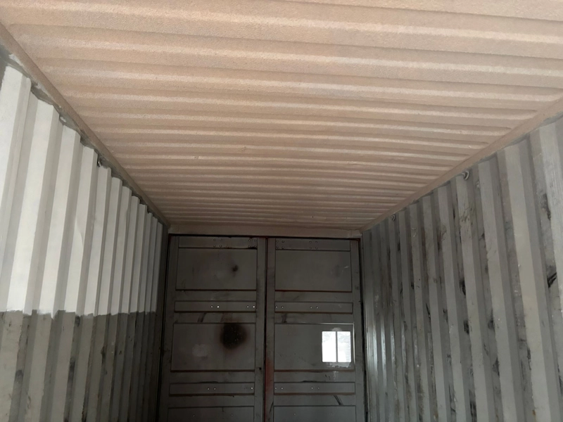 Container maritime dernier voyage aménagé en local de rangement et d’entreposage. Surface d’environ 14 m². Sol en contreplaqué marine 28 mm. Large porte coulissante offrant 4,5 m de passage. Repeint à la couleur de votre choix. Traitement anti-condensation au plafond. 7 777 € TTC