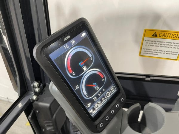 Poste de conduite ergonomique : Le poste de conduite est conçu pour offrir un confort optimal à l’opérateur avec des commandes intuitives et une visibilité exceptionnelle de la zone de travail. L’aménagement de la cabine permet une prise en main facile et réduit la fatigue lors des longues journées de travail.