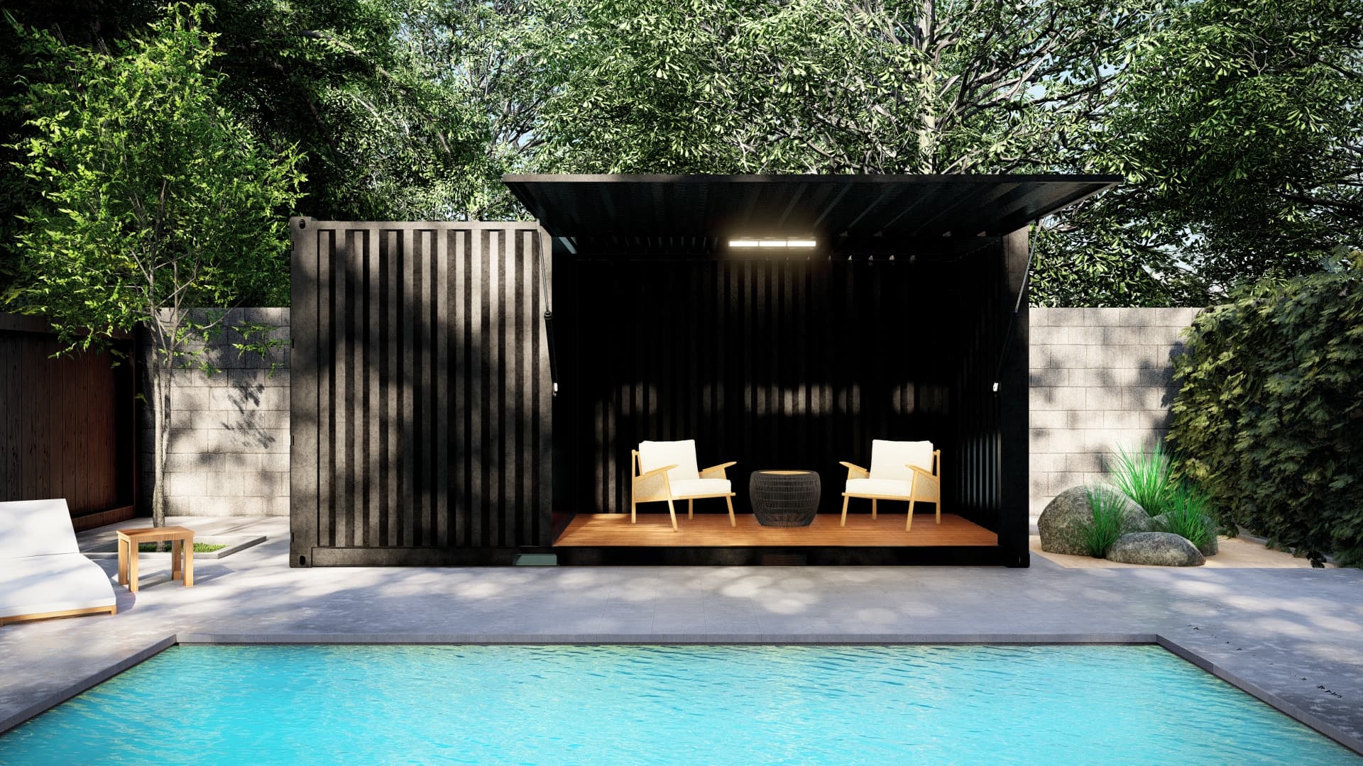 Pool House construite à partir d’un container de 20 pieds dernier voyage (peut présenter des bosses et des enfoncements).