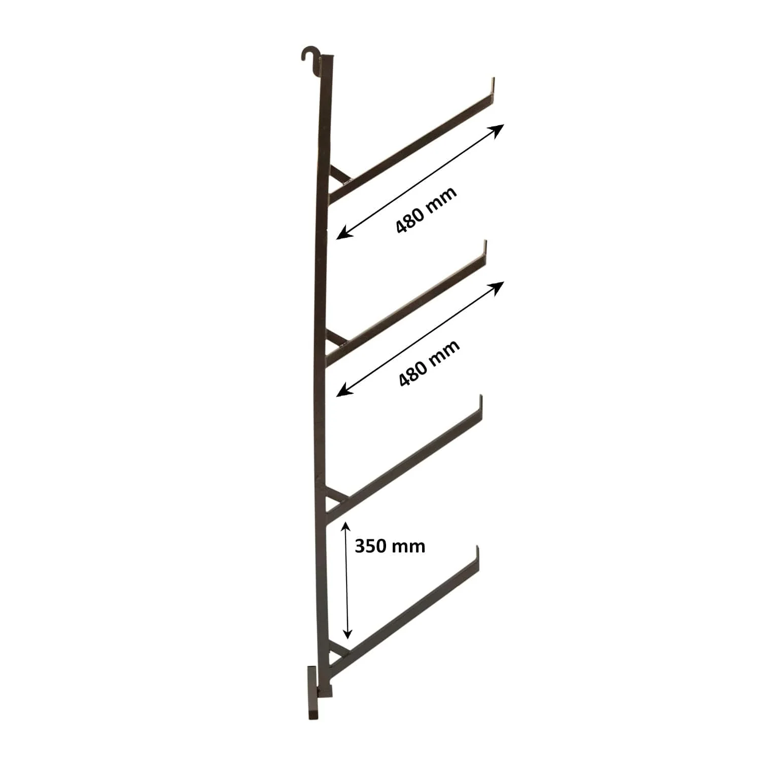 Conçu pour être suspendu en toute sécurité aux anneaux en D que l’on trouve à l’intérieur de tous les containers maritimes. Le support s’appui sur la parois du container au moyen d’une barre horizontale (à assembler au support principal).