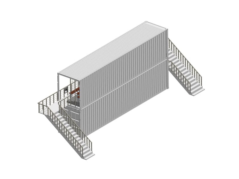 Tribune positionnée à l’étage pour offrir la meilleure vue aux spectateur sur le terrain, au-dessus de tout obstacle au bord de celui-ci (bancs arbitres et joueurs notamment). En-dessous, le container vous offre 29 m²/76 m³ de stockage pour vos équipements divers.
